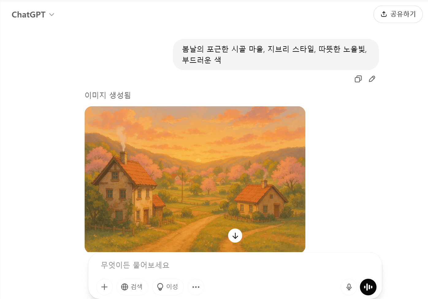 요즘 SNS나 블로그 보면 지브리 스타일 그림이 엄청 자주 보이죠? 이유는 간단해요. 보기만 해도 따뜻하고, 마치 어릴 적 기억 속으로 들어가는 기분이니까요. 이런 감성을 챗GPT랑 AI 이미지 툴만 잘 활용하면 나도 만들 수 있다는 게 신기하지 않나요? ✨